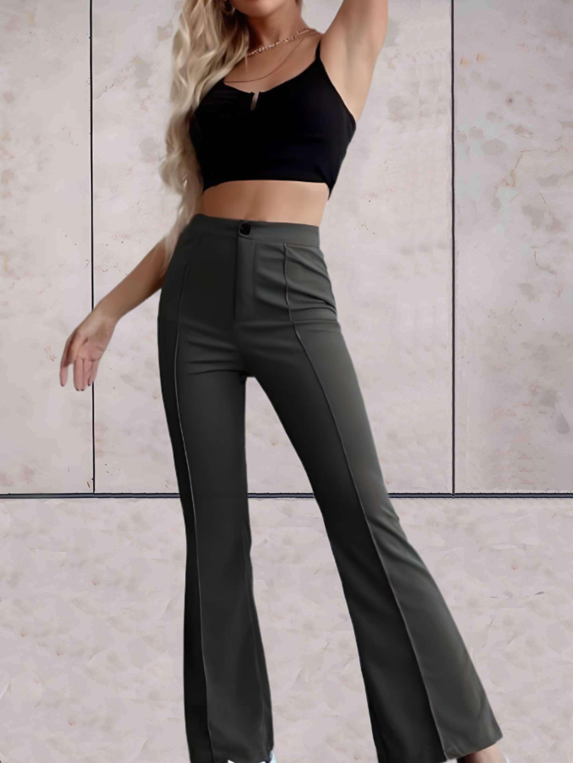Amélie - Hochgeschnittene, hübsch anliegende Hose mit vertikalen Falten und weitem Bein