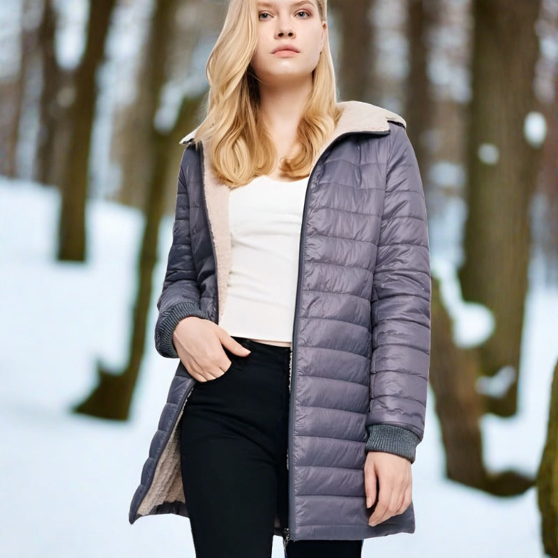 Apolline - Warme, lange Steppwinterjacke mit Kapuze
