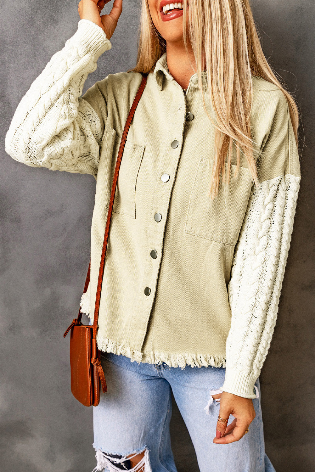 Ayana | Einzigartige khakifarbene Jeansjacke mit gestrickten Ärmeln