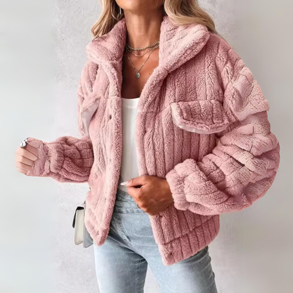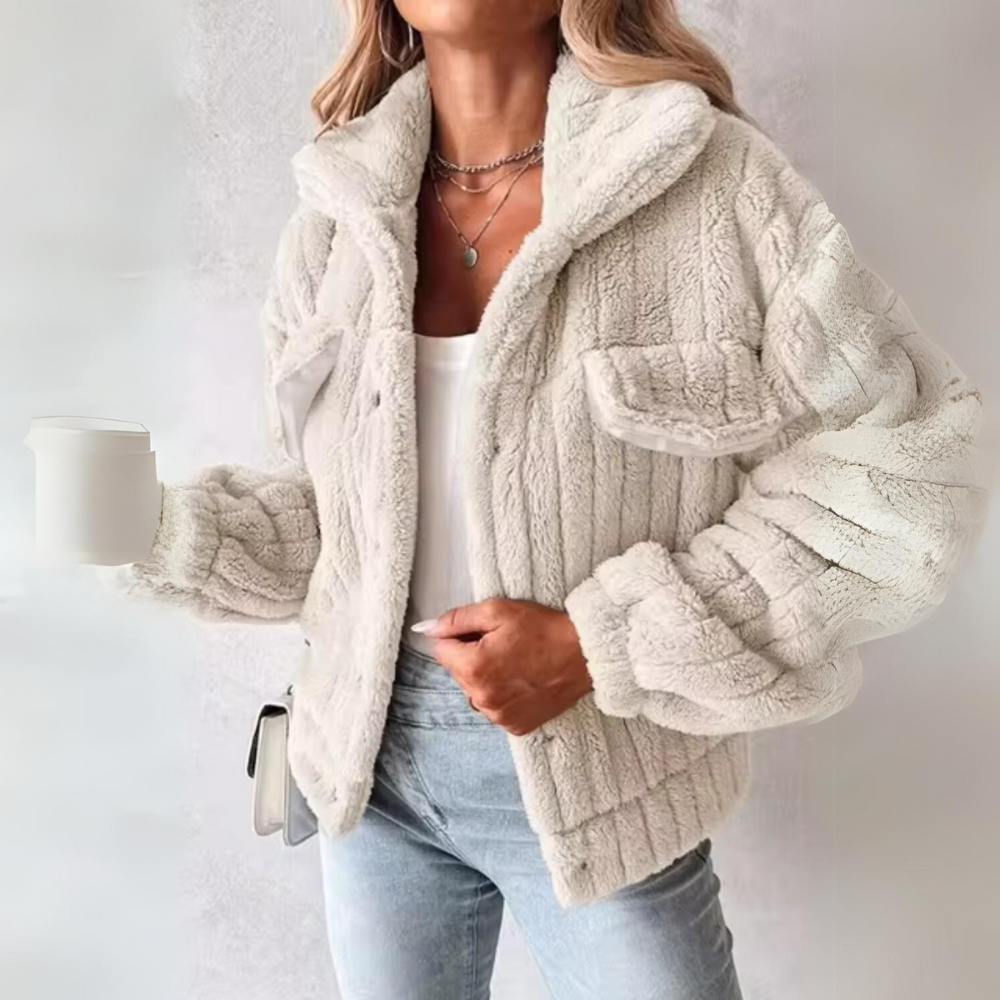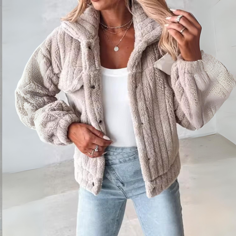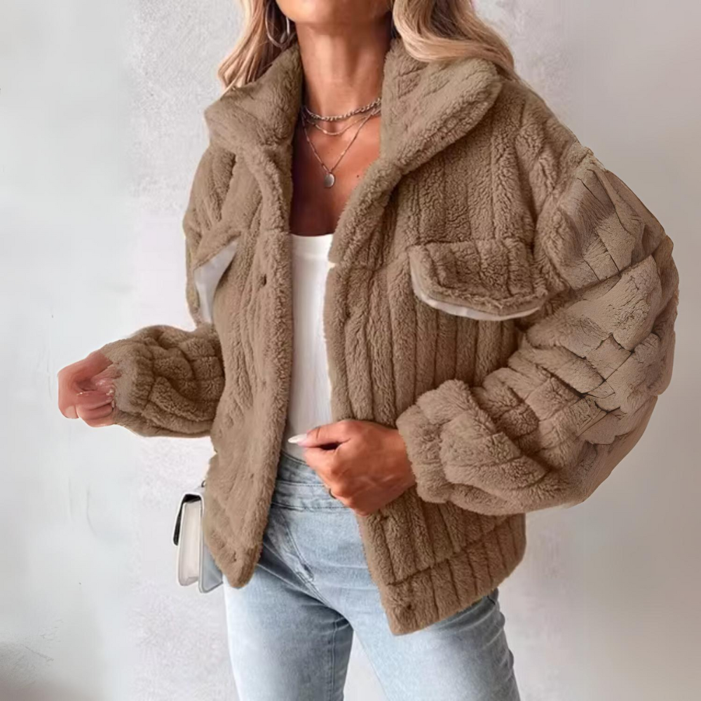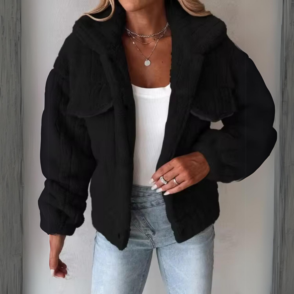 Diese Teddyjacke ist mehr als nur ein modisches Teil, sie ist eine unverzichtbare Ergänzung für Ihre Wintergarderobe. Der dicke, weiche Stoff bietet optimale Wärme, während der elegante Schnitt und der zeitlose Knopfverschluss dafür sorgen, dass Ihr Outfit immer perfekt ist. Egal, ob Sie einen legeren Tag oder einen formelleren Anlass planen, diese Jacke passt zu jeder Situation und verleiht Ihrem Look einen Hauch von Luxus.