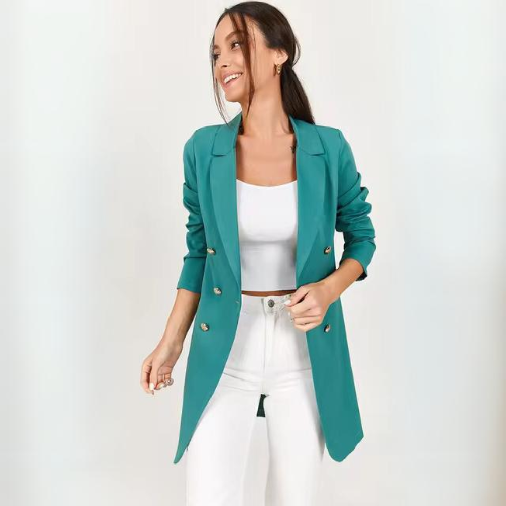 Diese lässige Anzugjacke definiert mit ihren weichen, zarten Materialien und der taillierten Passform Raffinesse neu. Sie ist mit einer doppelten Knopfreihe und einem mittellangen Schnitt ausgestattet und kombiniert zeitlosen Stil mit modernem Komfort. Das vielseitige Design sorgt dafür, dass Sie sie sowohl an entspannten Tagen als auch zu formelleren Anlässen tragen können.