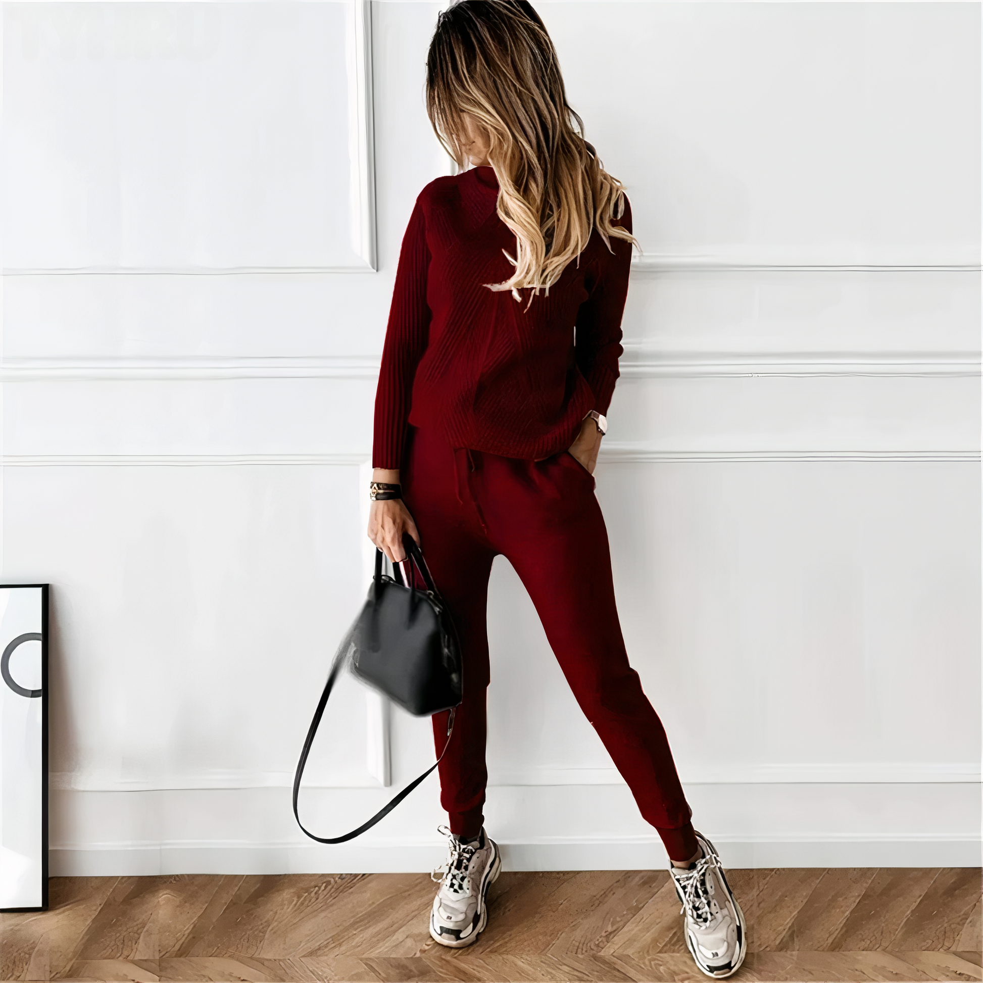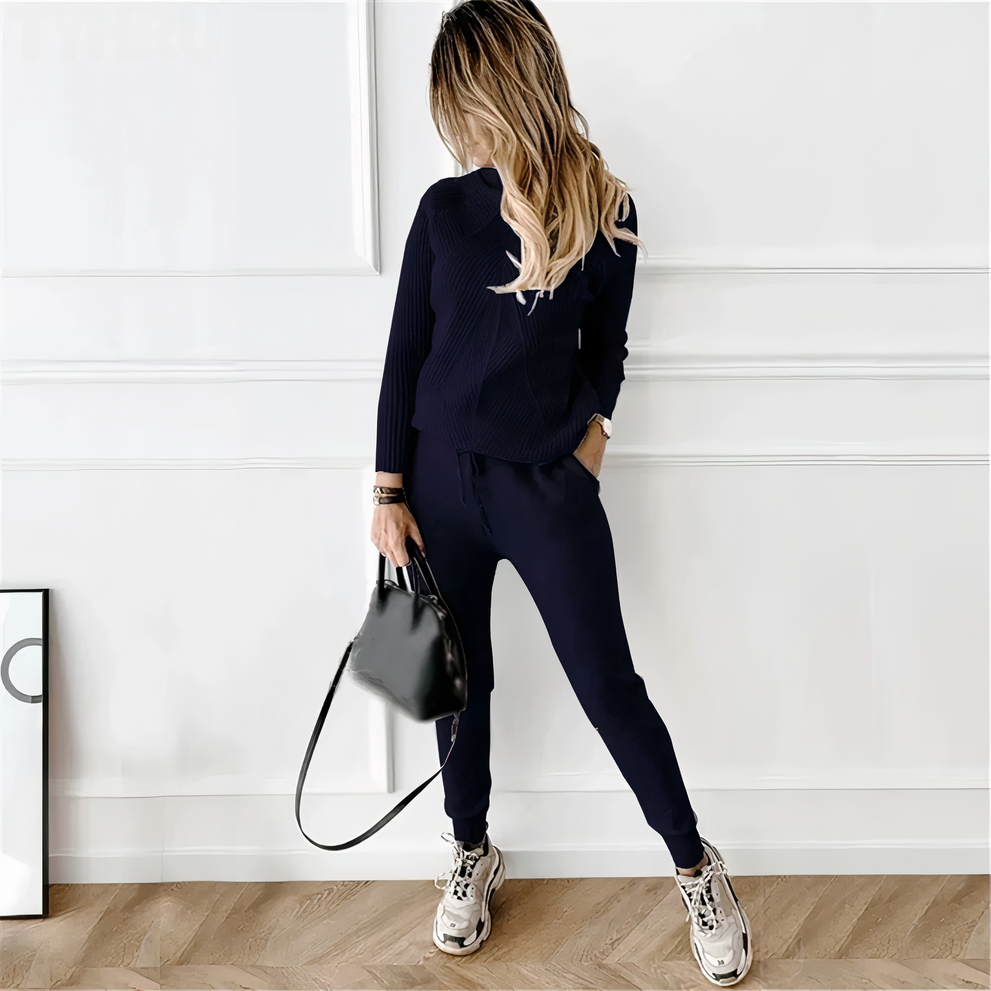 Gestreifter Rollkragenpulli und elastische Hose im Set - Yvette