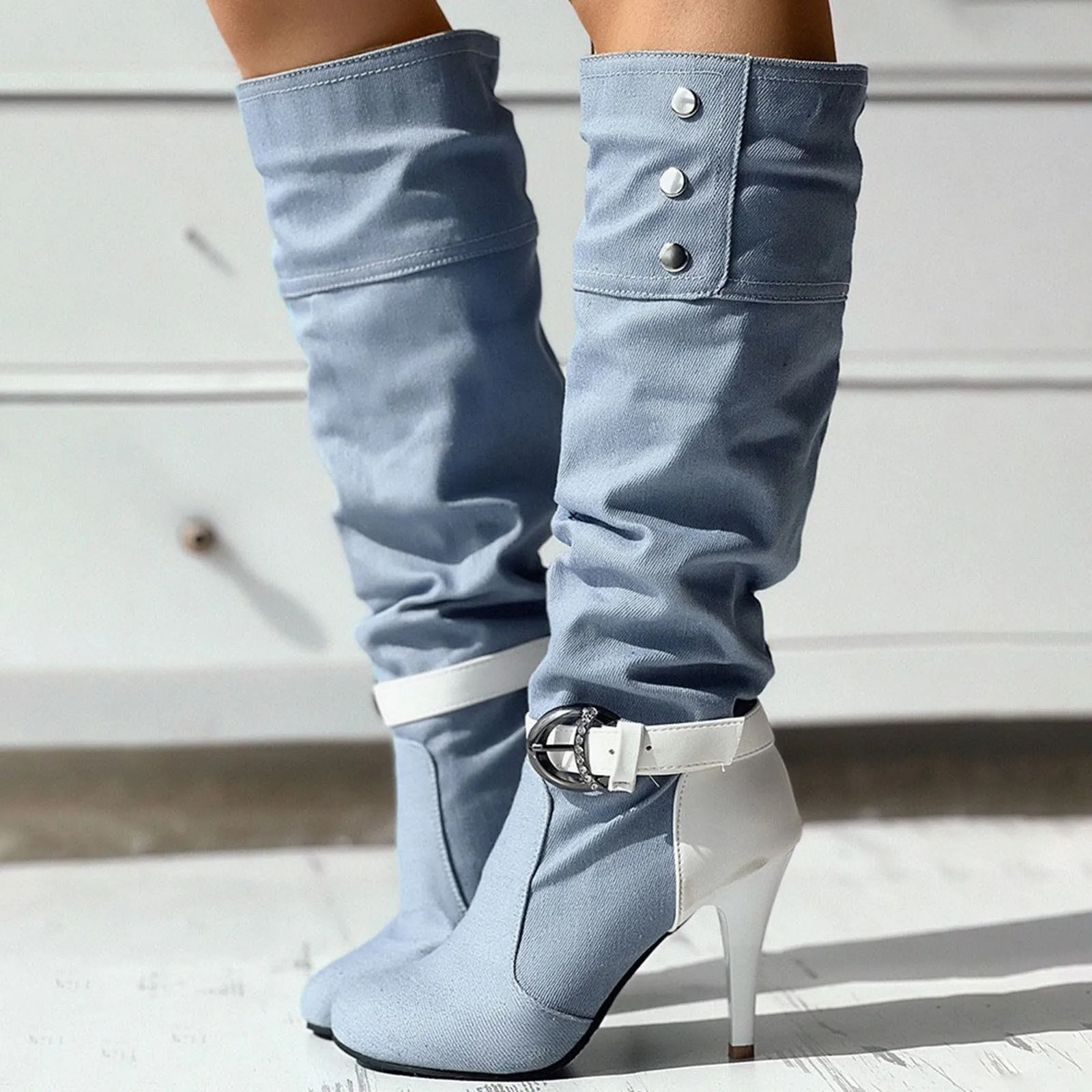 Hohe Patchwork-Stiefel für Frauen - Luzey