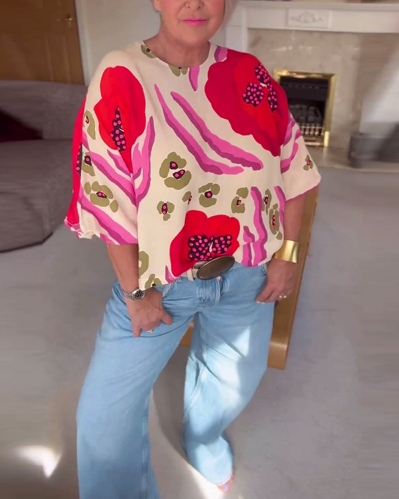 Fröhliches Top mit Rundhalsausschnitt und halblangen Ärmeln