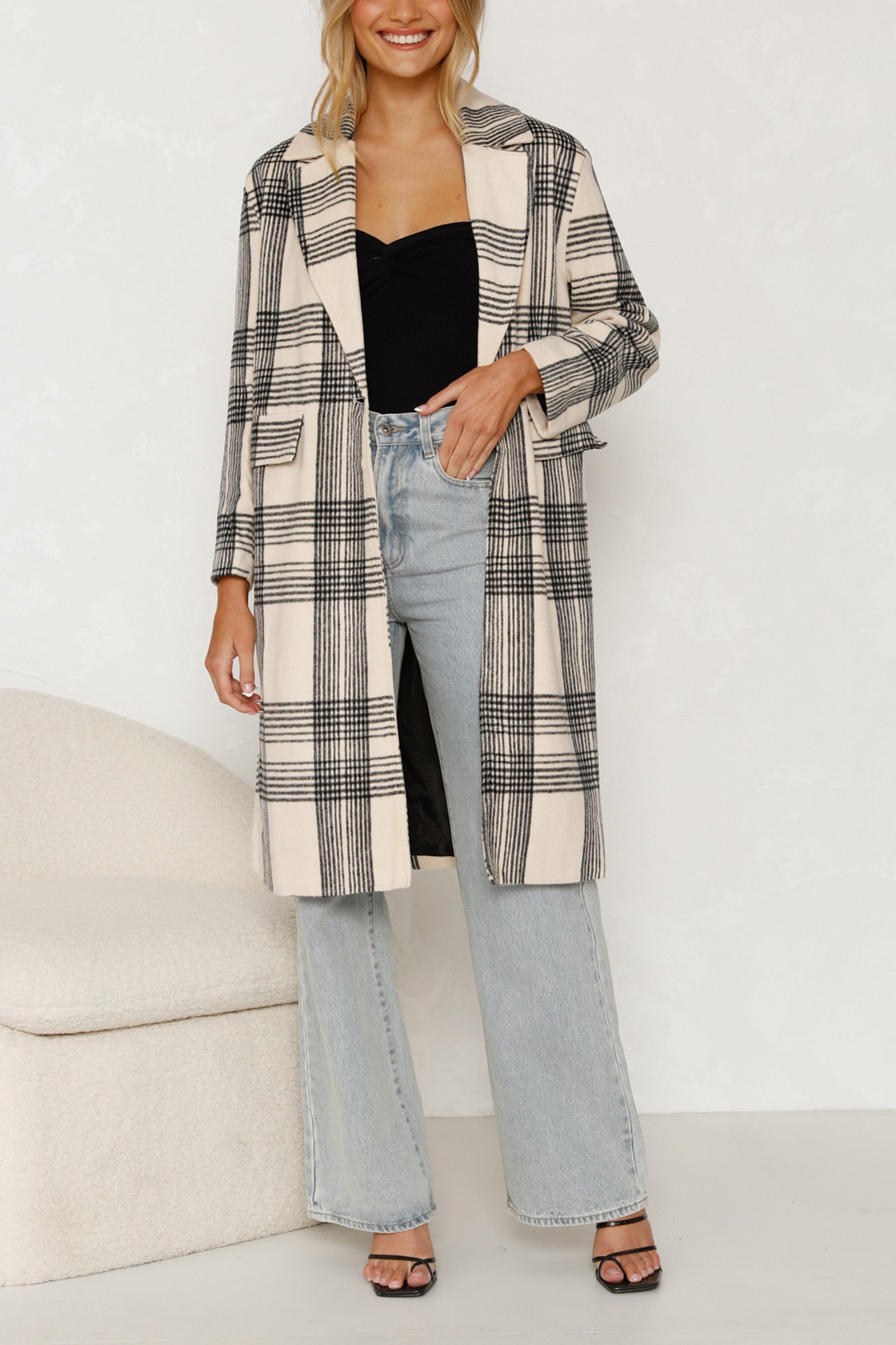 Karierter Langarmmantel für Damen
