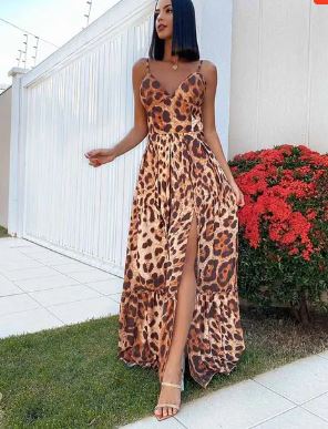 Kathleen - Verführerisches sexy langes Kleid mit Tierprint und Schlitz