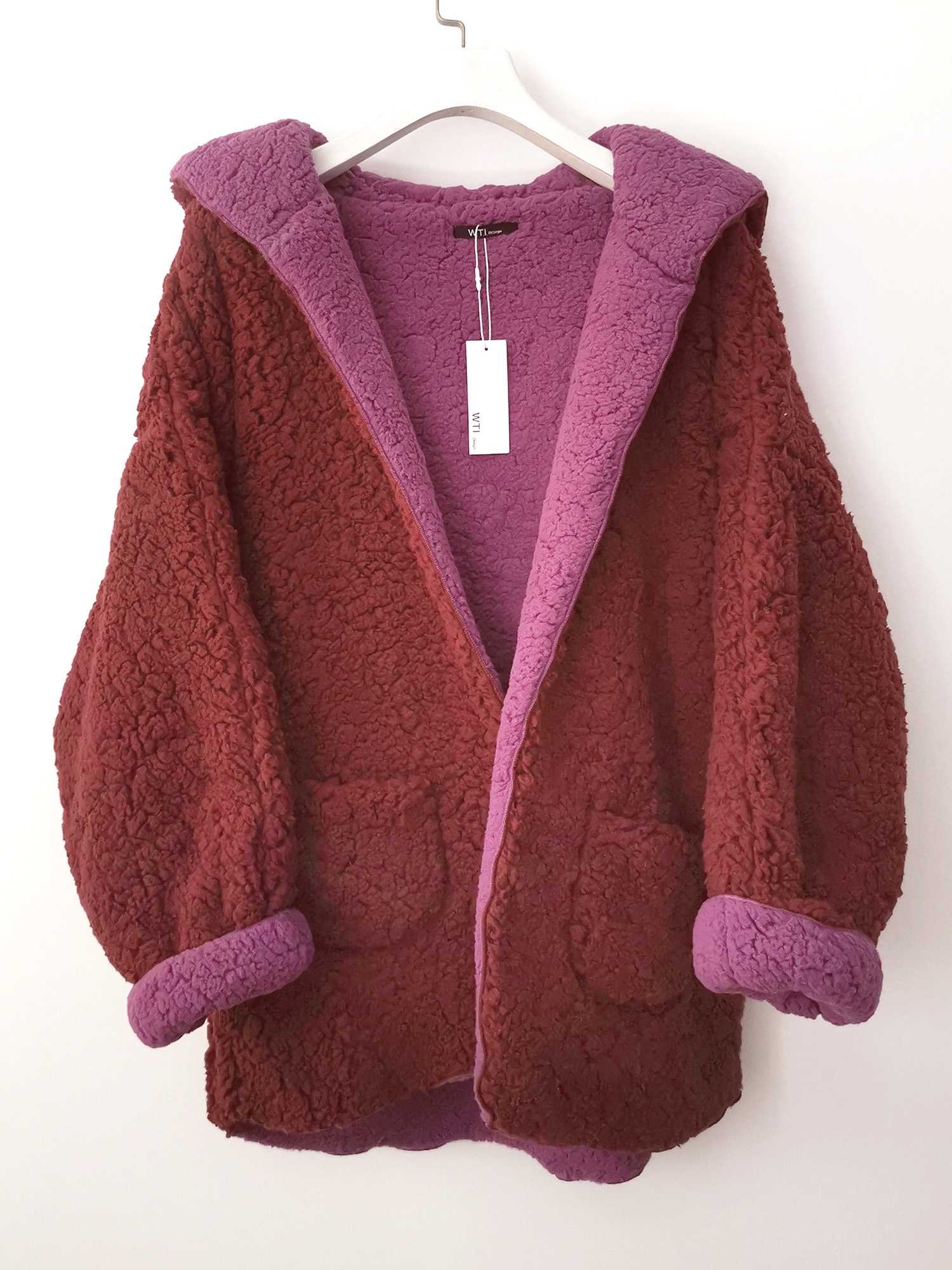 Kuschelige, reversible Oversize-Kapuzenjacke