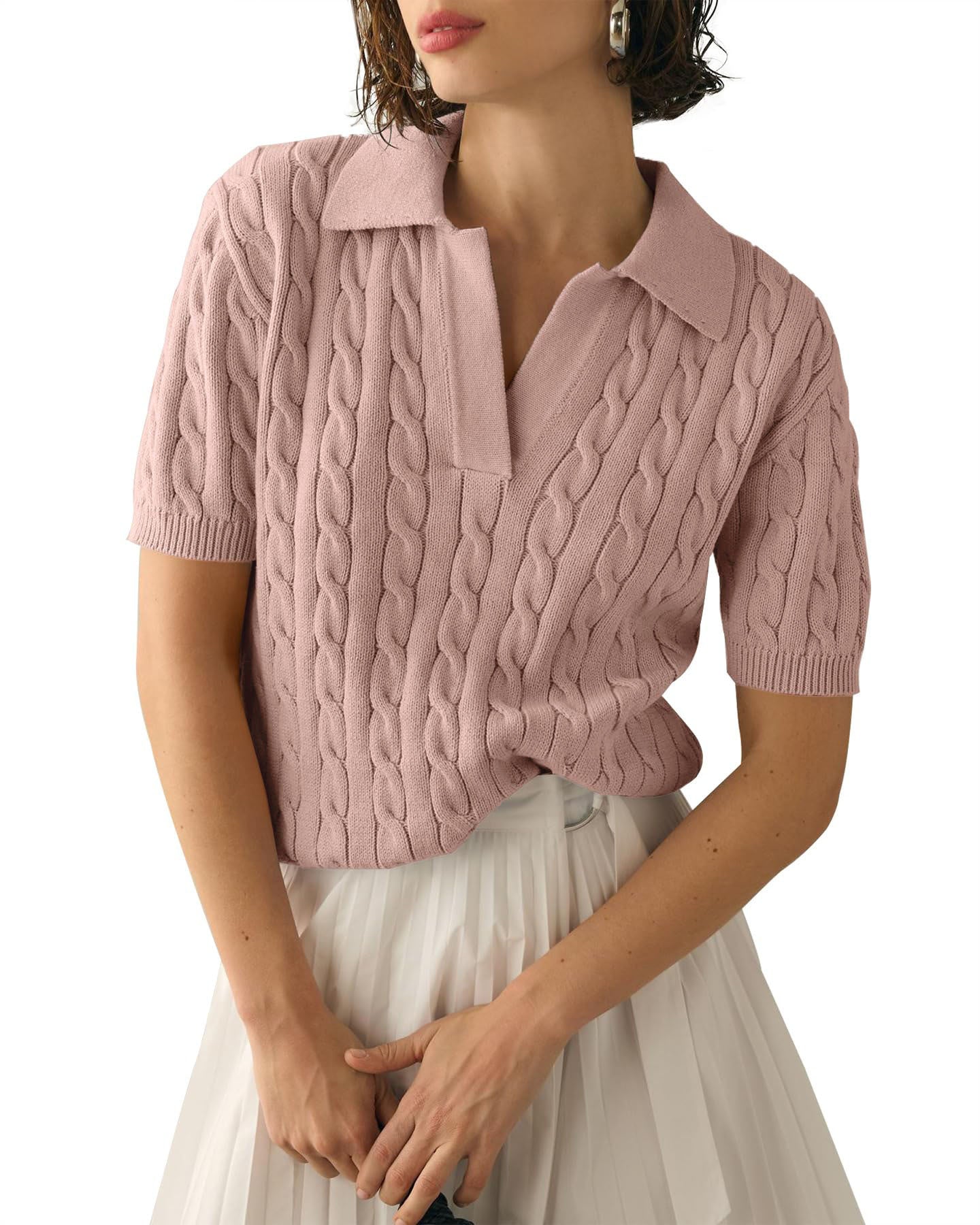 Lara | Stylisches kurzärmeliges Oberteil aus Zopfstrick