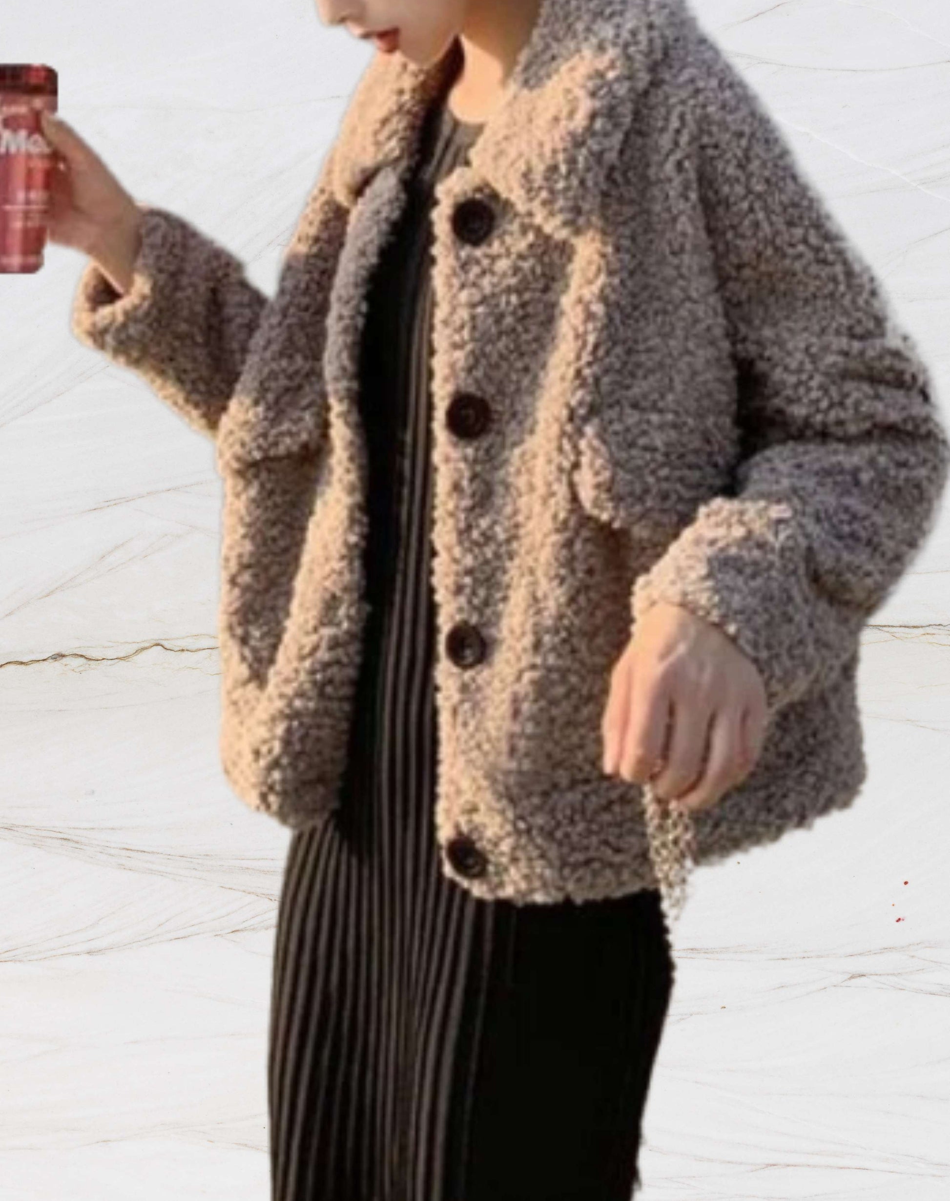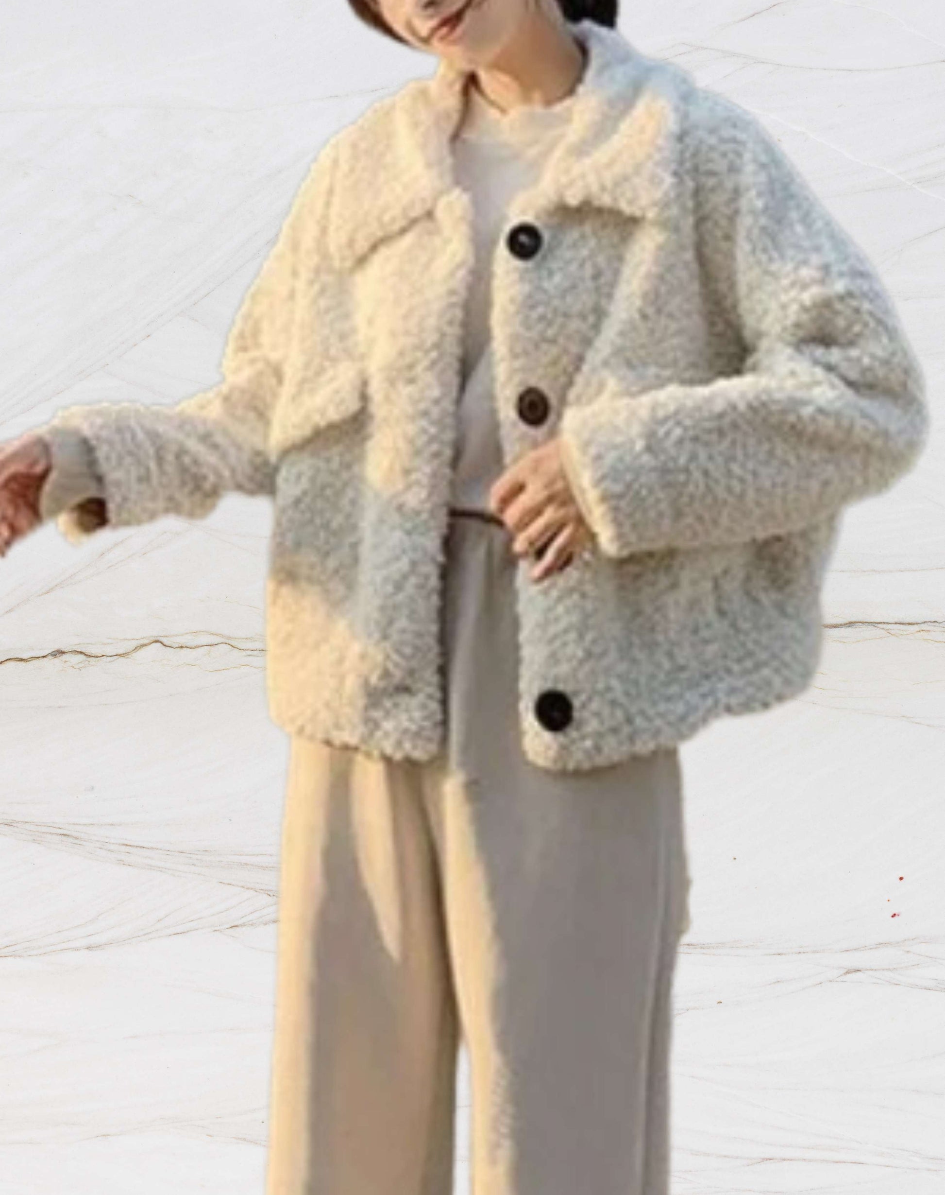 Dicker und warmer Damen-Lammfellmantel mit Polokragen