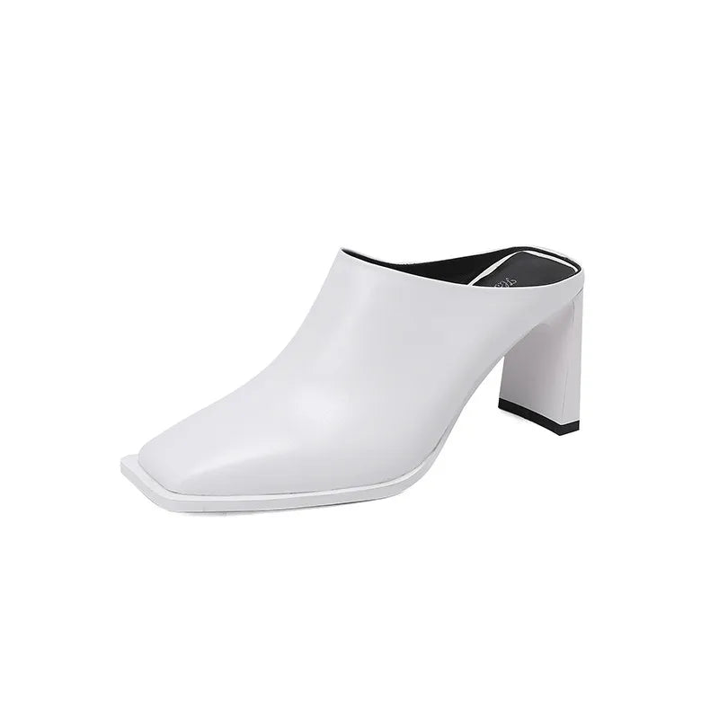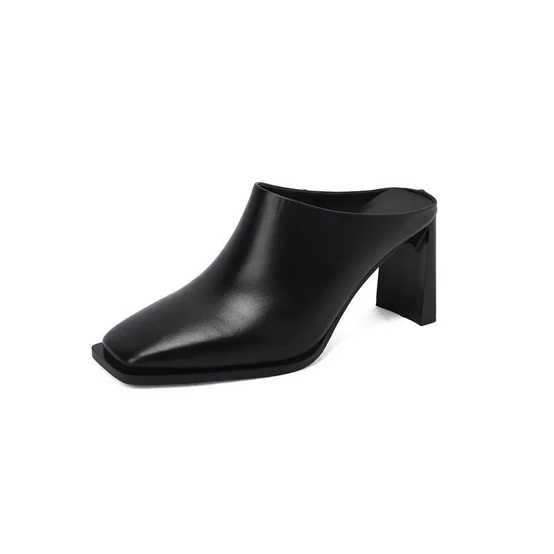 Quadratische Kopf offene Ferse Leder hohe Ferse Hausschuhe