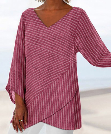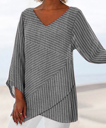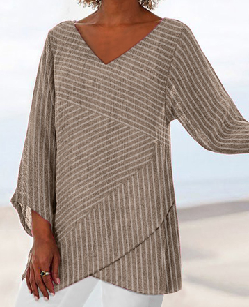 Teresa - Gestreiftes Top mit V-Ausschnitt und langen Ärmeln