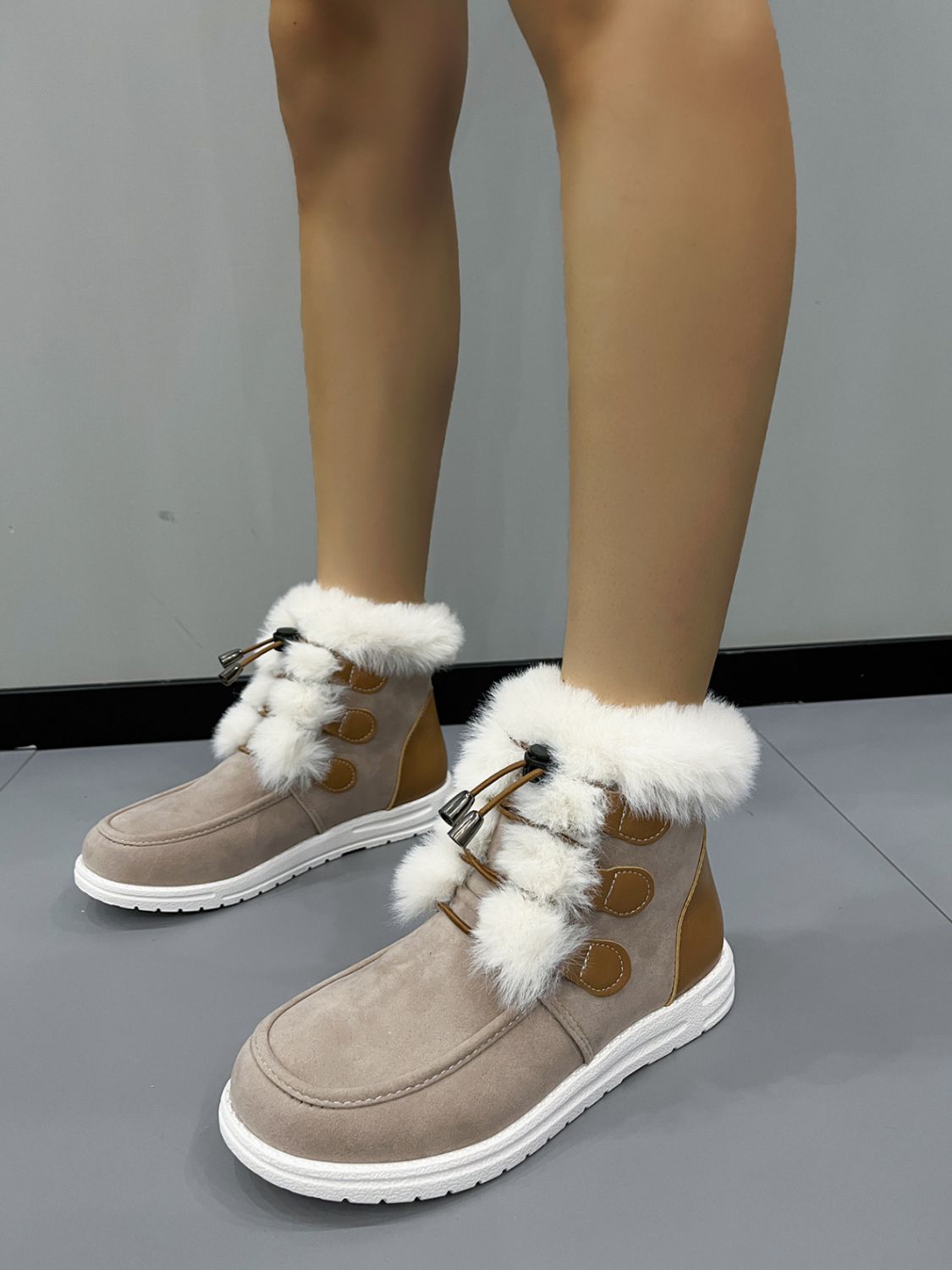 Wildlederstiefel mit runder Spitze und Plüscheinsatz