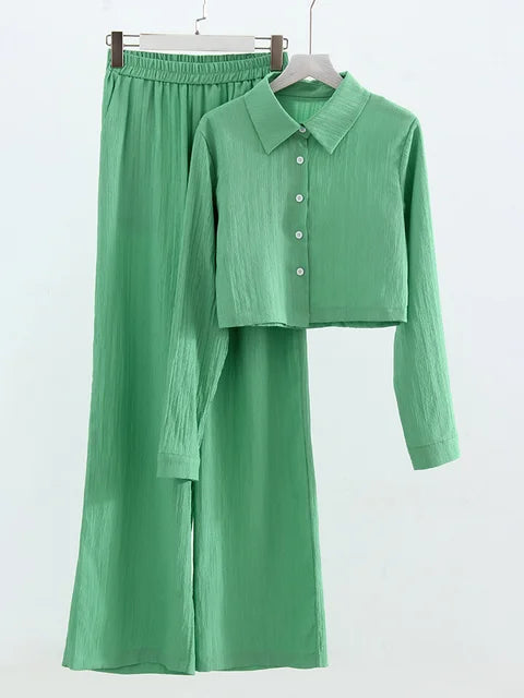 Wyomara Suit | Damen Crop Top und Hose mit weitem Bein Set